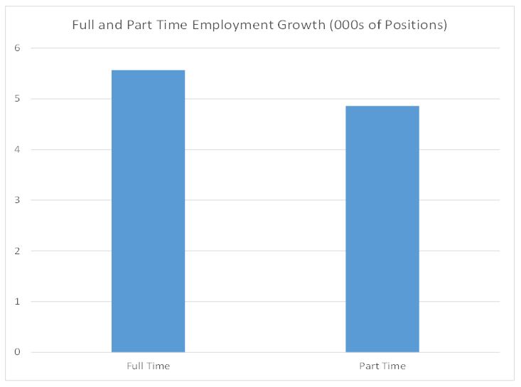 A closer examination of employment growth over the year (an increase of 5,600 full time jobs and 4,900 part time jobs) explains, in part, some of the consumer’s sluggish behaviour.