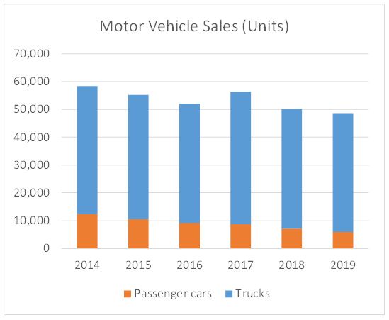 Consumer confidence is also reflected in consumer motivation to buy a new vehicle. It is often as critical a component of auto sales as consumer ability to pay and access to credit. 2019 new motor vehicle sales were down -3.1% from 2018. New minivans, sport-utility vehicles, light and heavy trucks, vans and buses sales were down -0.8%. New passenger cars sales were also down -17.2%.
